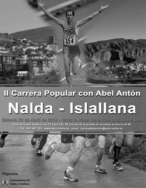 El próximo sábado, día 23 de abril, se celebrará la segunda edición de la Carrera Popular con Abel Antón, que el año pasado reunió a más de cien atletas en la localidad riojana de Nalda. El director general del Deporte, Diego Azcona, acompañado por el alcalde de la localidad, Daniel Osés, subrayaron durante la presentación que la prueba deportiva permitirá una vez más que "todos los participantes disfruten practicando este deporte y descubriendo la belleza paisajística que esconde el Valle del Iregua". Además, Azcona apuntó "que el hecho de que esta carrera cuente con la participación por uno de los mejores atletas españoles de todos los tiempos, una leyenda deportiva como Abel Antón, no hace sino confirmar que estamos ante una prueba cuidada y de gran calidad".