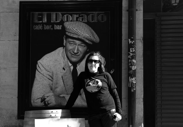 Seguro que Ainhoa Tilve ha disfrutado en más de una ocasión de una cerveza en El Dorado, el local situado en la calle Portales de Logroño. Dicen que la tiran como nadie. Ahora, Ainhoa expone allí sus fotografías, bajo el título ‘Como un Flash’. Ainhoa es periodista y está especializada en Comunicación Audiovisual y Artes Digitales. Ha desarrollado su carrera profesional en el campo de la publicidad como diseñadora gráfica, realizadora audiovisual, y productora de eventos. Últimamente –apunta- mira hacia la gestión cultural. Coloca con mimo y cuidando cada detalle las fotografías sobre las paredes que tan sólo unos segundos antes soportaban los retratos de Jerónimo y John Wayne. El Dorado se ha ganado la fama de pinchar buena música y es, precisamente, la música en directo lo que muestran las imágenes de ‘Como un Flash’. Ainhoa llegó a la fotografía siendo una niña. Con ocho años le regalaron su primera cámara: una réflex Mamiya de 35 mm y desde entonces –como diría el gran jefe indio- no ha dejado de robar almas disparo a disparo./Javi Muro