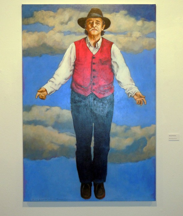 La muestra presenta también algunos de sus últimos trabajos relacionados con bodegas y vinos riojanos. También se pueden contemplar sus acercamientos a los clásicos e incluso al diseño de mobiliario. De los primeros destacan ‘Las Meninas’. El homenaje de Burgos a Diego de Velázquez y a su obra maestra. “Una pintura que respeta las dimensiones del cuadro original y la distribución de los personajes, aunque han sido sustituidos por protagonistas propios”. En ‘Las Meninas’ de Burgos aparecen desde el propio autor y su perro hasta los vecinos de Varea, de su barrio. “Las Meninas eran –asegura- el artista riojano- una obsesión; tan sólo cuando lo intentas descubres los difícil que es pintar como Velázquez”.