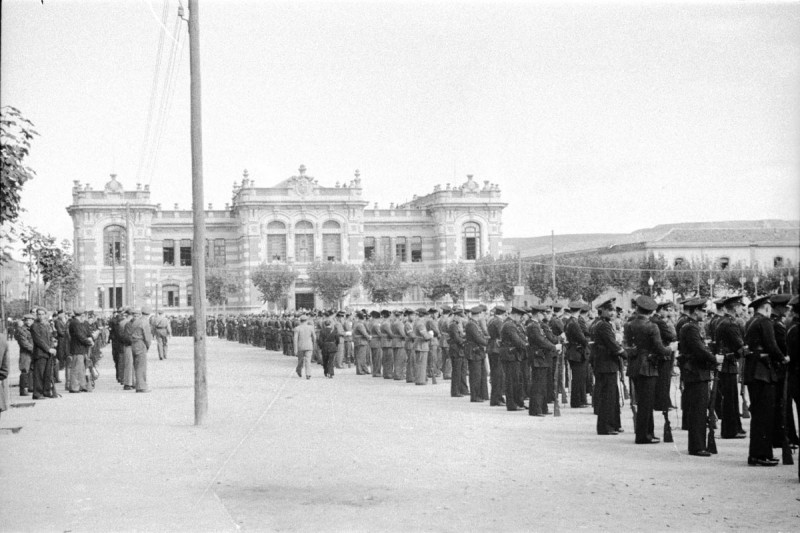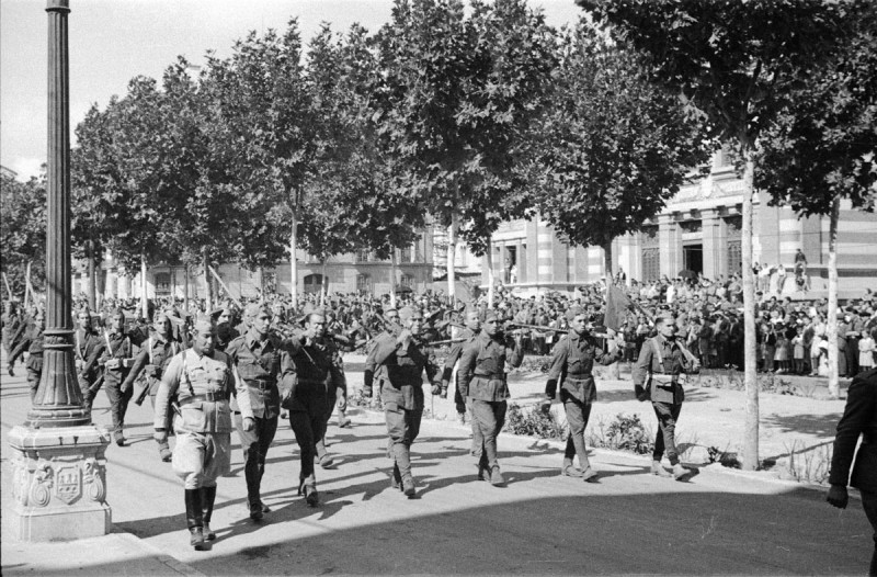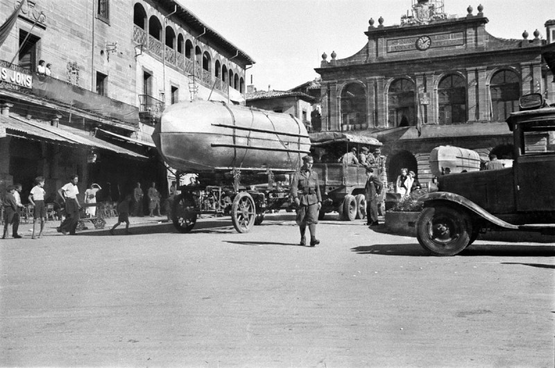 Una muestra que es también un recorrido por la ciudad en un periodo marcado por las turbulencias, desde la Belle Epoque, vivida simultáneamente con la crisis de la Restauración, la dictadura de Primo de Rivera, el advenimiento de la II República, el Levantamiento Militar y la posterior Guerra Civil. El sublevamiento militar del 18 de julio de 1936 estuvo apoyado por las potencias fascistas de Alemania e Italia. “Especialmente notable –resalta el catálogo- fue el apoyo de Mussolini mediante fondos, material y tropas, que se encuadraron en el llamado Corpo Troupe Volontarie".