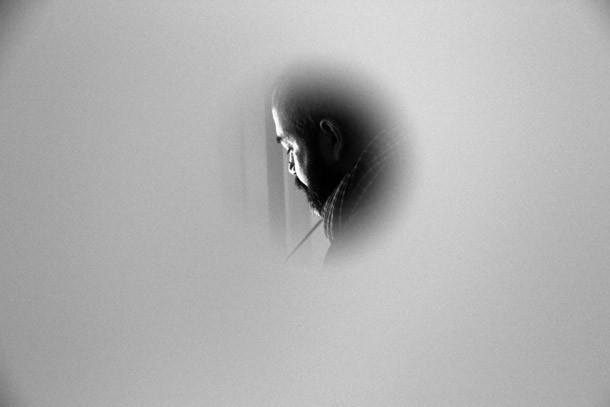 Encerrado en el interior del estudio en miniatura y observado por los ojos que se acercan a las mirillas que perforan sus paredes, Carlos Corres eleva la mirada hacia un cielo que no puede ver. Afuera, en la calle, la lluvia cae insistente y poderosa. “Me parece extraordinario que con la que está cayendo –el cielo parece haberse quebrado sobre Logroño- la gente se acerque a verme dibujar”. Corres es el tercer artista que acepta el reto de pasar una jornada desarrollando sus procesos creativos dentro de una gran caja blanca, cuyas paredes está recorridos por pequeños agujeros que permiten observar al artista en pleno trabajo. El desafío se denomina ‘Curioseando Artistas’ y lo plantea PeepArt Project, dentro del marco del festival Actual.