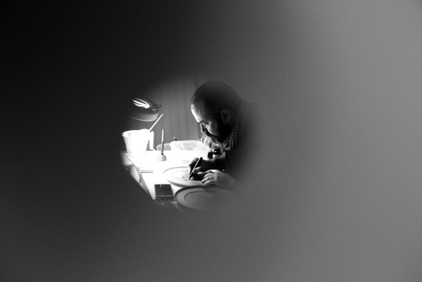 El artista devuelve por instante la mirada hacia los pequeños orificios desde los que le observan y reconoce sentir la vibración de la comunicación. Concluye la conversación con el deseo del artista de que la gente que está siguiendo cada trazo suyo sobre uno de los platos comprenda qué es lo que hace y porqué… seguimos curioseando artistas…/Javi Muro