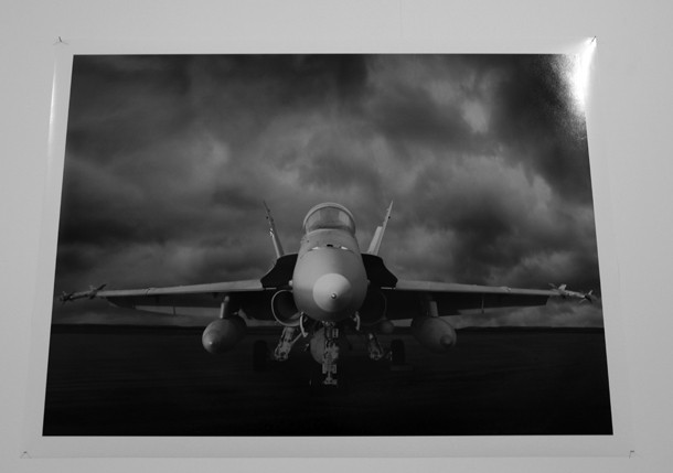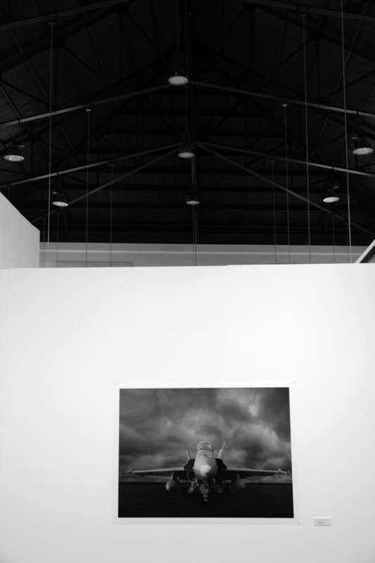 El paralelismo entre la obra de Tiziano, el catálogo de la armería de los Clifford y las fotografías de Vallhonrat discurre a través del simbolismo entre lo militar y el poder, tanto en el pasado como en la actualidad. Y es que las imágenes que componen ‘Escenas de caza’, que hasta el 3 de septiembre acoge la Sala Amós Salvador de Logroño, muestran una amplia serie fotografías de aviones de guerra. En concreto esos aviones de ataque rápido, más conocidos como ‘cazas’. Quizá, a primera vista, ‘Escenas de caza’ pueda parecer tan sólo una extensa serie de fotografías de aviones de guerra, una especie de catálogo.