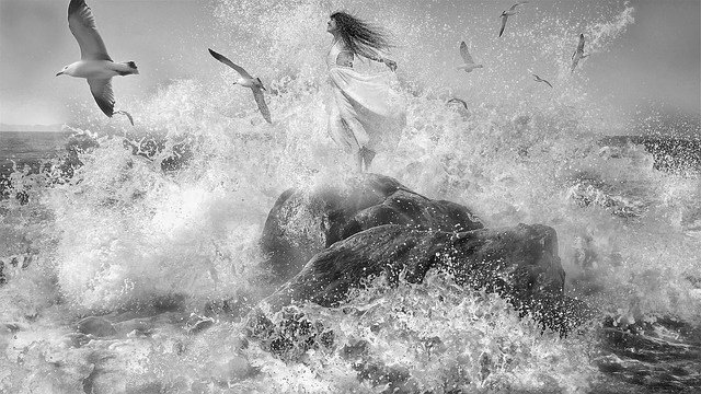 Sus cabellos, enredados en la mugre del mar, se agitaron con violencia provocando olas gigantes y aires huracanados. Tras su paso todo quedaba en un silencio sepulcral tan sólo roto por su propio lamento.