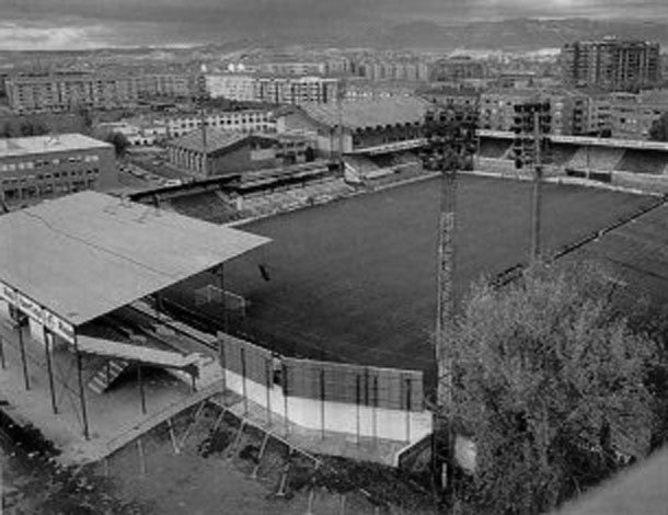 Calificado eufemísticamente como “coqueto” o “vetusto”, Las Gaunas era un desafío arquitectónico, kafkiano y desordenado en el que cada grada representaba el momento determinado en que había sido ampliado en función de las necesidades. Una metáfora interesante de la ciudad. El ascenso también obligaría a construir un graderío con nuevas e inverosímiles tribunas pero, inalterable y majestuosa frente a todas ellas se alzaba una mole de cemento y techos de uralita: La General. Ocupando un lateral del campo donde se congregaba de pie la mayor parte de la afición, soportando de frente el sol de las cinco de la tarde, se concentraba entre humo de tabaco y efluvios de pacharán la masa ruidosa y festiva, las charangas y algunas de las peñas que le imprimían el carácter por el que la entonces inocente afición del Logroñés sería reconocida en el resto del país esos primeros años en la élite. Como en otros campos de fútbol, en Las Gaunas se veía representada la estratificación social. Ya en aquellos años la reivindicación de un campo nuevo era un clamor, aunque este no llegó hasta el año 2002.