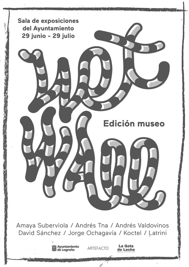 Amaya Suberviola, Andrés Tna, Andrés Valdovinos, Jorge Ochagavía, Koctel y Latrini -todos artistas urbanos- mostrarán su trabajo en la exposición Wet Wall, que se inaugura el próximo jueves en Logroño. La actividad forma parte del II Festival de Arte Urbano de la capital riojana, que en esta ocasión amplía su propuesta de intervenir murales en la vía pública con esta muestra colectiva de profesionales del arte urbano procedentes del mundo del graffiti, del street art, la ilustración moderna y el diseño gráfico.