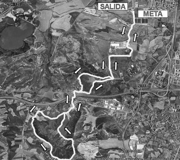 La salida y la meta se sitúan al comienzo del camino de La Coronilla, junto a las instalaciones del Frontón Titín II, en la calle Serradero de Logroño. El recorrido contempla en su trazado las ascensiones al Monte La Pila (567 m.), Pico Coronilla (668 m.) y Pico del Águila (657 m.), recorriendo también la parte de la cresta y la ladera.