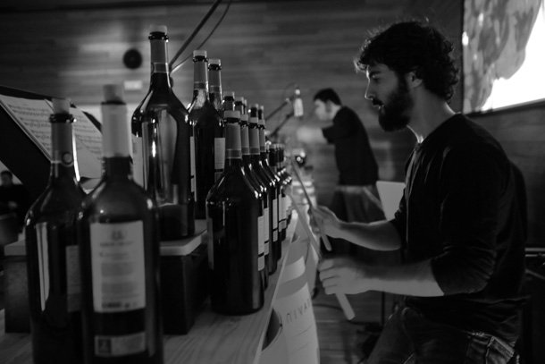 Botellas de vino, copas, sarmientos, barricas, depósitos, estrujadores, hojas y un largo etcétera de improvisados instrumentos que conforman ‘Los Sonidos del Vino’, bajo la tutela del propio David.