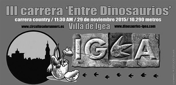 La localidad riojana de Igea acogerá el próximo domingo, día 29 de noviembre, la tercera edición de la 'Carrera entre dinosaurios', una prueba de la modalidad 'country' incluida en el calendario del VIII Circuito Solo Runners. En sólo tres años esta prueba se ha consolidado como una de las más esperadas del calendario del Circuito por la belleza de sus paisajes y la exigencia de su recorrido.