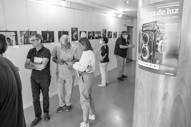 El vestíbulo de entrada al Edificio Vives de la Universidad de La Rioja acoge del 17 al 31 de mayo la Exposición ‘Caja de luz’, organizada por la Asociación de Alumnos y Ex Alumnos de la Universidad de la Experiencia (ADEX). La Exposición ‘Caja de luz’ es fruto del último Taller de Fotografía, impartido por Carlos Rojo Aladro, dentro de las actividades de carácter formativo de la Universidad de la Experiencia de La Rioja de y la iniciativa de la Asociación de Alumnos de la misma (ADEX). Este taller se inició en el año 2020 y por motivos derivados de la pandemia, finalizará con esta exposición en 2022.