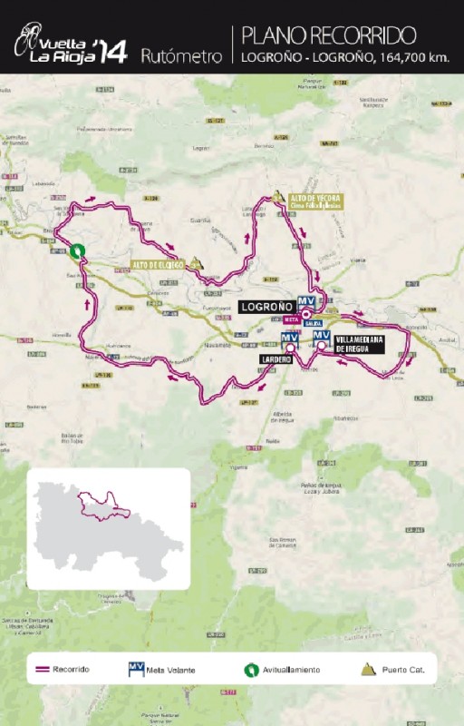 El recorrido es prácticamente llano, destacando tan sólo los altos de El Ciego y Yécora situados a 62 y 42 kilémtros de meta y ambos calificados de tercera categoría. Así, el recorrido de la Vuelta a La Rioja puede definirse como rompe piernas y adecuado para corredores todoterreno con una buena punta de velocidad final. El pasado año, el italiano Francesco Lasca, enrolado en las filas del Caja Rural obtuvo la victoria por delante de Mathews y Hanson. Lasca supo sacar provecho del curveo final del recorrido y de la extrema vigilancia que los integrantes del grupo de catorce corredores que llegaba destacado ejercía sobre Alejandro Valverde.