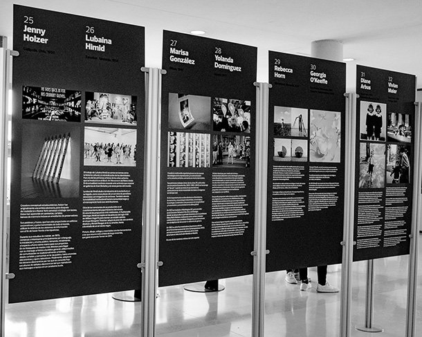 Sus nombres son: Artemisia Gentileschi, Barbara Kruguer, Blanca Muñoz, Cindy Sherman, Cristina García Rodero, Diane Arbus, Doris Salcedo, Esther Ferrer, G. Okeeffe, Hannah Höch, Isabel Muñoz, Isabel Quintanilla, Jenny Holzer, Juno Calypso, Louise Bourgeois, Lubaina Himid, Marina Abramovic, Marisa González, Mariví Ibarrola, Martha Rosler, Maruja Mallo, Meret Oppenheim, Mona Hatoum, Nikki de Saint Phalle, Paula Modersohn-Becker, Rebecca Horn, Remedios Varo, Sherrie Levine, Sonia Delaunay, Vivian Maier, Yayoi Kusama y Yolanda Domínguez.