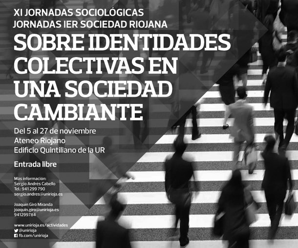 El debate sobre las identidades colectivas en una sociedad cambiante centrará las XI Jornadas Sociológicas, que organiza la Universidad de La Rioja en colaboración con el Instituto de Estudios Riojanos. El encuentro se celebrará entre el 5 y el 27 de noviembre y tendrán como escenario la propia universidad riojana y el Ateneo Riojano.