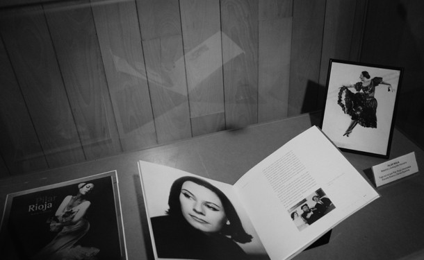 ‘Vanguardias’ reserva en la danza la figura más sorprendente de la exposición. Pilar Rioja (México, 1932) es una bailarina de padre riojano y madre burgalesa que ha desarrollado su carrera en México. En sus espectáculos fusiona la tradición del flamenco con los bailes tradicionales mexicanos. En Estados Unidos la conocen como la ‘María Callas de la danza’. Ha mezclado la danza que le enseñaron sus padres –dio sus primeros pasos de baile aprendiendo las jotas riojana y burgalesa- con los bailes mexicanos. La Casa de la Danza ha cedido un vestido de Pilar para esta exposición. Su director Perfecto Uriel, acompañado por una familiar de Pilar Rioja, recuerda que la bailarina ha cedido al centro que dirige toda la obra que realizó en México, “tanto en vídeos como en libros. Es una artistas reconocida a nivel mundial y una persona con mucho carácter”. La gran pantalla de la sala de exposiciones permite descubrir a la bailarina riojana.