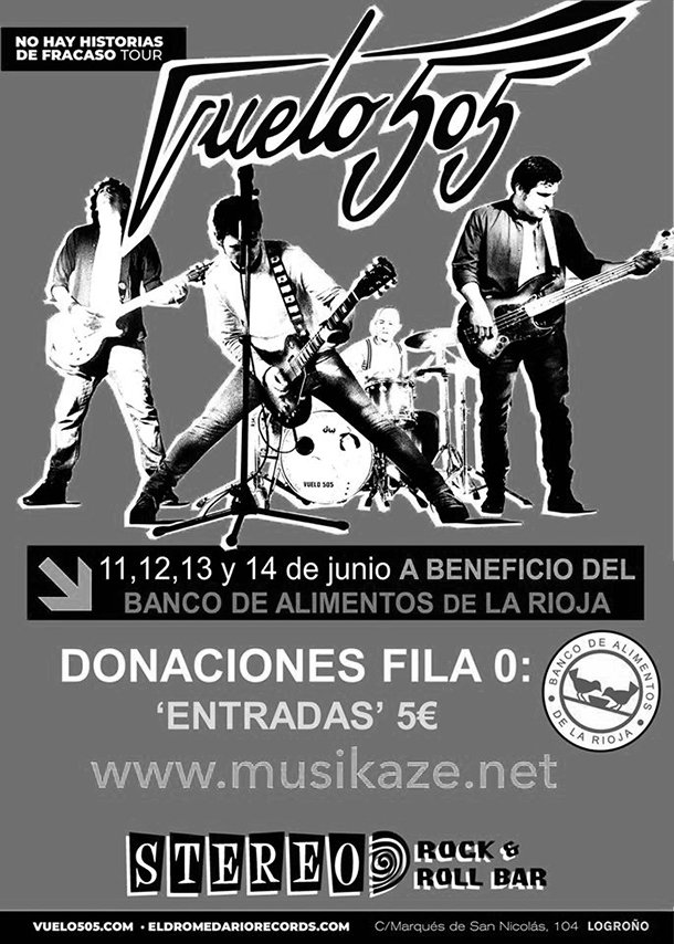 La banda riojana y el local logroñés fían la realización de los conciertos al avance de La Rioja en la 'Desescalada'. Las fechas escogidas por Vuelo 505 y Stereo R'N'R harán coincidir las fiestas de San Bernabé de Logroño "con la previsible entrada en la Fase 3 de la 'Desescalada', que permitirán realizar el concierto con las máximas medidas de seguridad además de todas las condiciones para que los asistentes puedan disfrutar nuevamente de un concierto de rock and roll de verdad, con el contacto directo entre artistas y público que tanto echamos de menos".