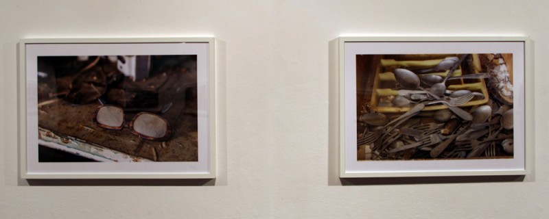 Las gafas de vista cansada de la bisabuela tienen los cristales empapados del polvo de una decena de añadas. Durante un tiempo las recuperó el abuelo y las utilizaba cuando necesitaba hacer cuentas en algunos de sus papeles. Ahora descansan en el interior de la fotografía de Raquel Benito Olarte, junto a la cubertería en plena rebelión -los tenederos con las cucharas y viceversa, mientras los cuchillos se han dado a la fuga-, o las botas que se mantienen firmes sobre el desierto que tiempo ha generado sobre la mesa. Para Raquel la fotografía es una necesidad y en 'Felicidad', la exposición que acoge la Sala Caja Rioja Gran Vía dentro del Programa Abierto de la Universidad Popular de Logroño e integrada en el festival 'Mujeres en el Arte en La Rioja', ha retratado la casa familiar, ya abandonada, y los objetos que aún residen allí. Habla el escritor Julio Llamazares en el texto que acompaña a las imágenes de la fotógrafa riojana de tiempo detenido. La gente que allí vivía de repente decidió irse y dejó todo como estaba un instante ante. "Se oye el murmullo inaudible pero imaginable de todos estos objetos que se quedaron huérfanos; objetos que continúan fieles a sus dueños clamando por su regreso".