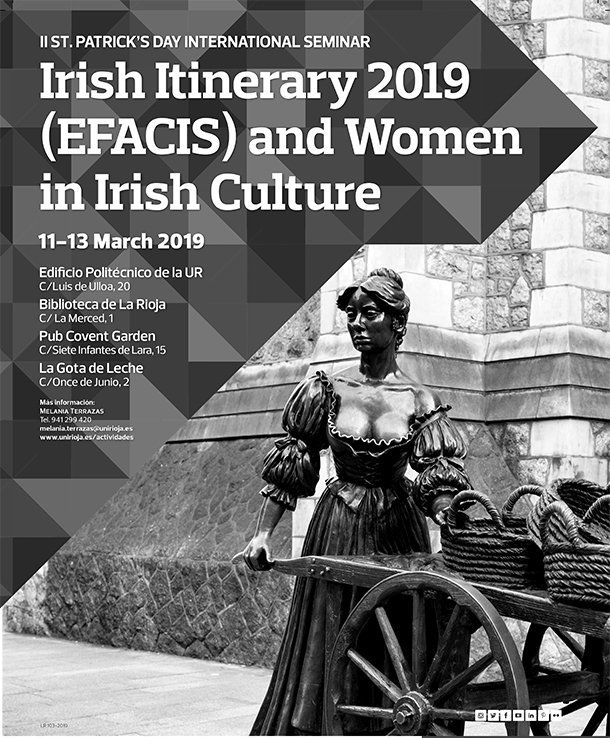 El II St. Patrick's Day International Seminar: Irish Itinerary 2019 (EFACIS) and Women in Irish Culture está financiado por la Comisión de Actividades Culturales de la UR y está organizado por el Centre of Irish Studies Banna/Bond, perteneciente a EFACIS.
