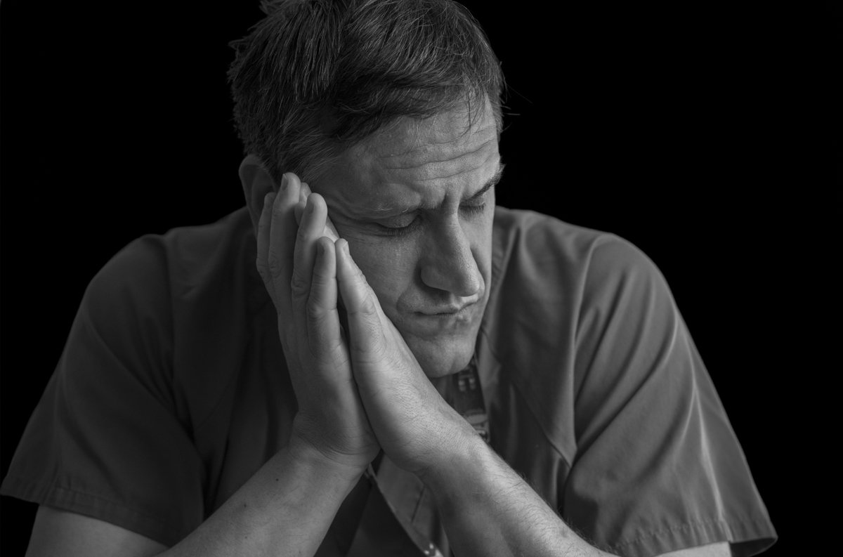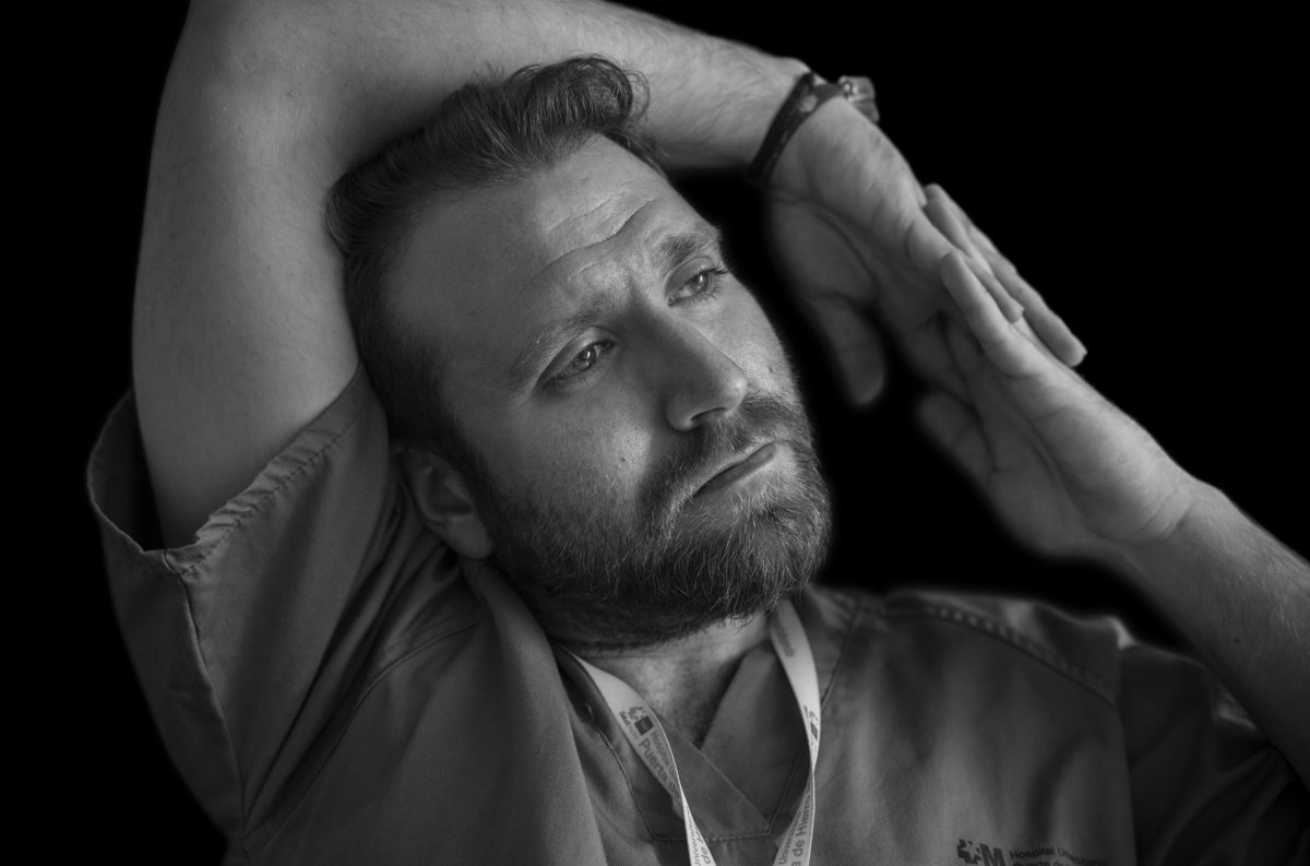 Para producir 'El tiempo de cura', Brandâo instaló un estudio fotográfico durante varios días dentro de cada uno de los hospitales. En cada uno de ellos se realizaba una convocatoria y los profesionales que querían participar en el proyecto se pasaban por el improvisado estudio en sus momentos de descanso durante sus turnos de trabajo. “Mientras trabajan días y horas sin descansar, en constante acción, sin tiempo ni energía para asimilar todo lo que les estaba pasando internamente, les ofrecía una pausa, una silla bajo mi luz para conocerlos y escuchar cómo se sentían, y al invitarles a un momento de tranquilidad e introspección muchos se conectaban con sus emociones por primera vez desde el inicio de la pandemia. Lejos de la imagen heroica que cargaban pude ver de cerca la naturaleza vulnerable de estos seres humanos, que se diferencian de los demás por tener como deber la cura y el cuidado".