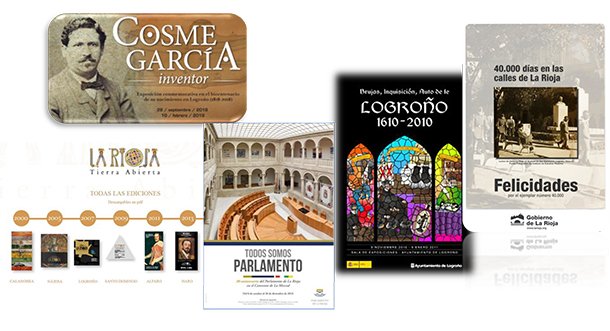 Colaboración en exposiciones: se colabora de manera activa en la cesión de materiales del archivo y biblioteca para exposiciones, principalmente con el Gobierno de La Rioja y el Ayuntamiento de Logroño, La Casa de las Ciencias, Sala Amós Salvador, Biblioteca Pública de La Rioja, Museo de La Rioja, Museo Vivanco, etc. Actualmente y como bibliotecario del IER con motivo de su 75 aniversario se ha comisionado la exposición itinerante "El Instituto de Estudios Riojanos (1946-2021). 75 años de historia'.
