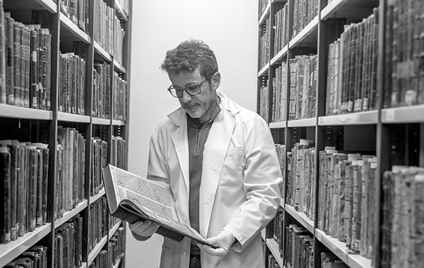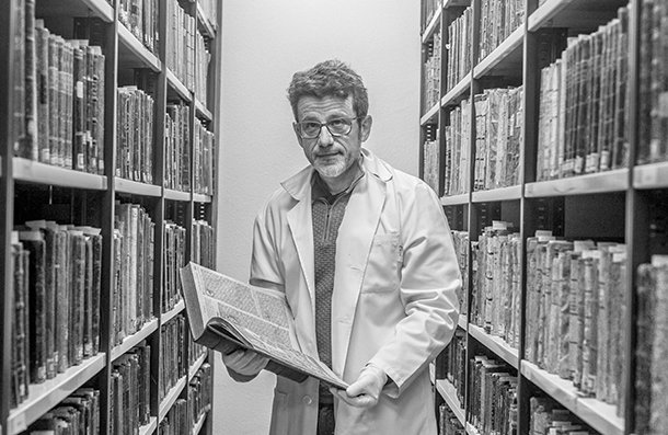 José Ignacio Peso es el responsable de la Biblioteca del IER. "Bibliotecario y archivero" se define a sí mismo porque muchos de los perfiles profesionales se fusionan en el Instituto de Estudios Riojanos. Conversar con Nacho, como gusta que le llamen, es acercarse a la Historia de a pie de La Rioja; de sus habitantes, comerciantes, nobles, agricultores, viticultures, ganaderos, de los monasterios, bodegas, pueblos y ciudades. Un relato recreado a través de documentos que lo mismo recogen ordenanzas municipales, que libros de contabilidad de una hacienda rural; cartas, documentos públicos, partituras musicales, documentos religiosos, manuscritos, incunables, archivos personales, revistas, grabados o fotografías. Adentranrse en los archivos del IER de la mano de Nacho permite evocar La Rioja tiempo atrás y compartir su pasión por todos y cada uno de los pequeños detalles que atesoran libros, documentos e imágenes, y que son las piezas esenciales del puzle que constituye la Historia de La Rioja./Javi Muro