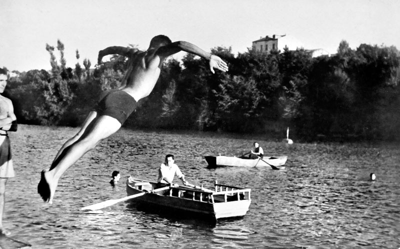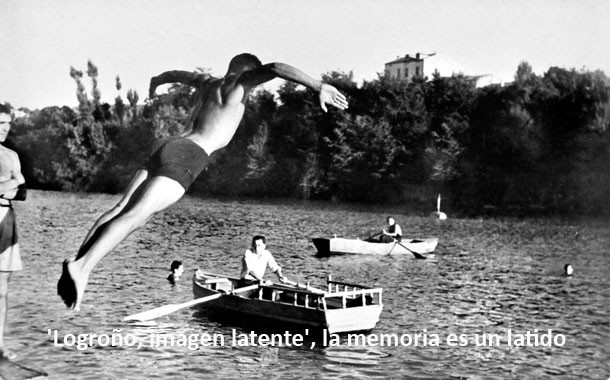 Quizá fue ése el click que detonó la tradición de fotógrafos logroñeses y que ahora, nuestra memoria –lo que Bernardo Sánchez llama el estado fotoquímico inestable- nos permita recordar, mientras observas las imágenes de la exposición, los saltos desde el trampolín situado bajo el puente de Hierro (1944), el ferial (1905), las carreras ciclistas en los circuitos urbanos sobre un asfalto que era arena, el teatro Moderno (1915), o los nuevos autobuses en un día de gabardina y barro.