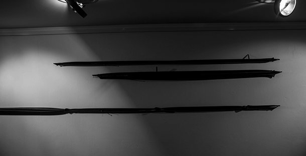 Las tiras de caucho que recorren las paredes de la sala de exposiciones del IRJ se muestra deformadas. “Del caucho me interesaba investigar sobre la tensión de los cuerpos. ¿Qué genera esa tensión llevada al límite? Desgarros, pérdida de la capacidad flexible, pérdida de la capacidad de regreso a la forma original, rotos, deformaciones. Además, el caucho me permitía investigar sobre la capacidad de sostener otros cuerpos, otras piezas. A través del trabajo con el caucho he comprobado que como material en tensión genera cambios que forman parte de las cualidades del propio material”.
