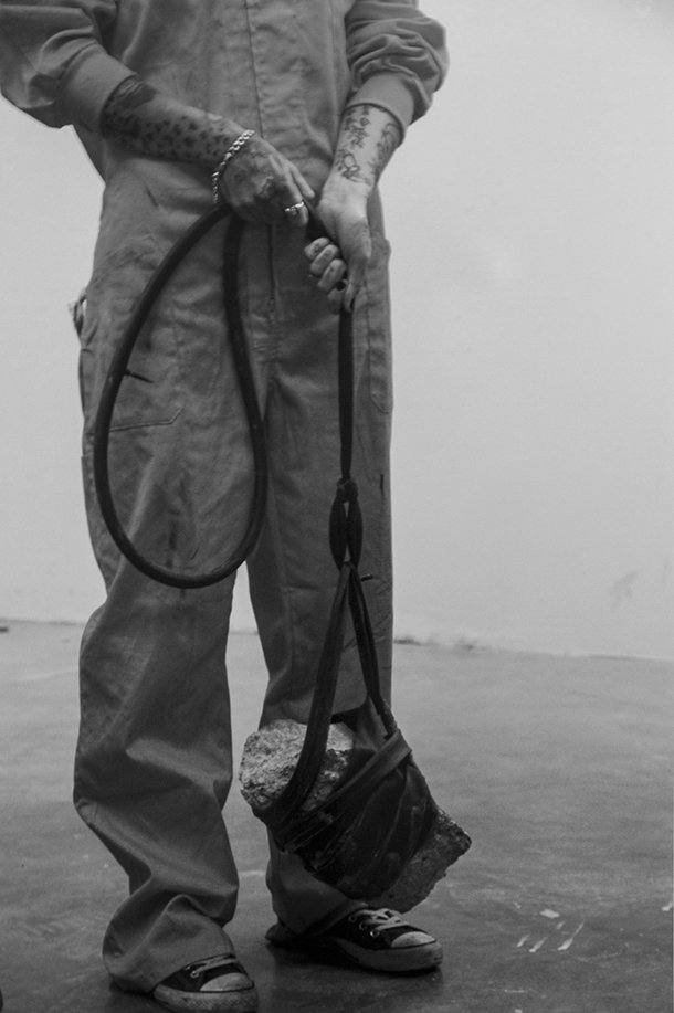 …no… igual todo lo contrario, los percibo como materia. La metáfora es una idea que nos remite a otra idea, y en ‘Inertia does not exit’ la propuesta es observar la materia en sí, las cualidades de la materia. Investigar como el caucho puede tensarse y comprobar cuál es su límite y que ocurre, qué peso puede soportar, o qué sucede cuando el cemento impacta y se rompe; dónde se encuentra esa relación entre la fragilidad y la solidez. Del mismo modo, observar como el cemento puede amoldarse a otros cuerpos. ‘Inertia does not exit’ tiene que ver con la propia materialidad, más que ser una metáfora.