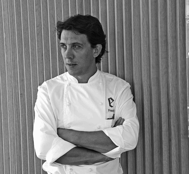 A Francis Paniego se le ve feliz. El cocinero riojano se ha ganado el prestigio y el reconocimiento de ser considerado uno de los mejores restauradores del país. El Premio Nacional de Gastronomía (2011) así lo avala. Reconoce que está cumpliendo muchos de sus sueños. A pesar de las dudas iniciales, su padre le convenció para emprendiera el camino de la cocina, para que diera continuidad a la tradición familiar que inició el tío Pedro hace un siglo. Aprendió junto a los mejores, de sus padres, por supuesto, y también de Adriá, Arzak o Subijana. Dice que hace cocina con alma. Habla de la tierra como algo esencial, sin que eso suponga renuncia alguna a ningún ingrediente de la geografía española. Le gusta innovar, algo imprescindible para seguir adelante y asegura que la inspiración depende de su estado de ánimo. Echaurren en Ezcaray "es la casa madre"; Tondeluna en Logroño "es un sueño que ha servido para hacernos fuertes como pareja a Luisa -su mujer- y a mí". ¿El futuro?... "Hacer la cocina que sienta en cada momento"./Javi Muro