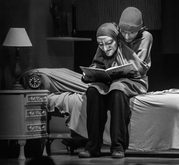 Sí, hay veces que se te cruzan los cables. Es complejo, ya que sobre el escenario se relacionan al mismo tiempo, por ejemplo, el personaje del chico –máscara- con el títere que representa a la abuela, que leen juntos un libro. Es complicado, es muy importante saber dónde estás y cómo coordinas la interpretación de los dos personajes. Es un trabajo muy técnico desde el punto de vista de que tienes que saber que tu brazo de ocupar un lugar exacto en escena porque es el espacio del títere y porque en caso contrario se pierde la sensación de relación con el personaje que interpreto a través de la máscara. Si todo ocupa el lugar adecuado la sensación es de dos personas relacionándose.