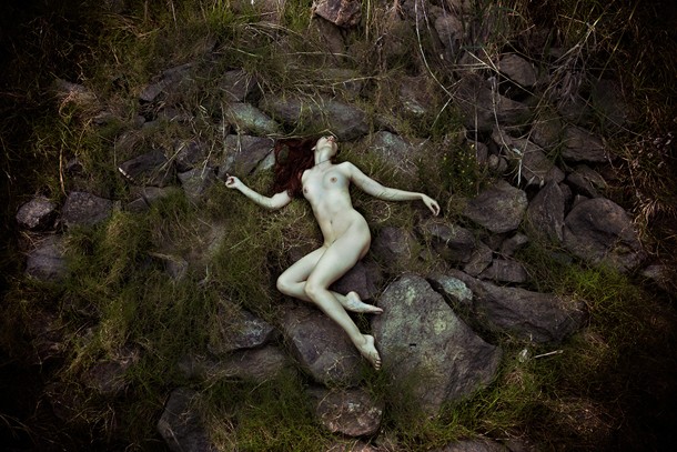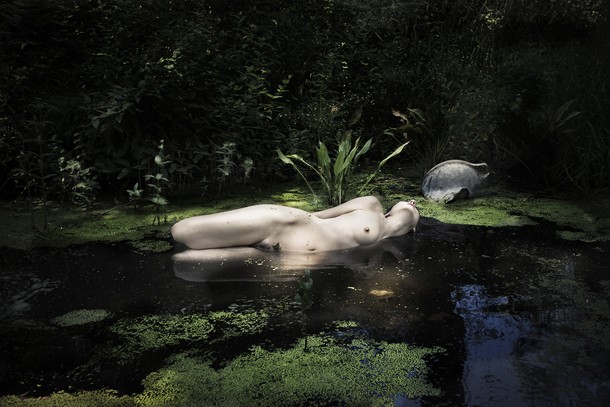 S.- Como comenzaba esta conversación, es imposible resistirse a penetrar en tus fotografías cuando recibes ese empujón que te introduce en ellas. Ya dentro, observas a las protagonistas en una mezcla de sensualidad placentera en conexión con el bosque, los árboles, sus raíces, con el agua… tienen algo de hadas y tratas de no hacer ruido para no molestar…, pero al mismo tiempo, presientes que reflejan cierto temor… ¿Es así, hay temores en esos personajes, son temores de la propia fotógrafa?