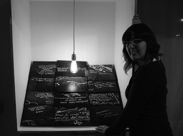 … Amaia contrapuso las frases escritas hoy en día. “El relato de Calisto y Melibea y las dedicatorias actuales me permitía jugar con la idea del paso del tiempo y mostrar generaciones diferentes antes parecidas situaciones”.