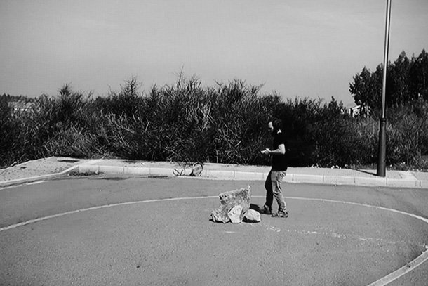 En la propuesta de Román Corbato, asturiano afincado en Pontevedra, planea también la crítica elegante. ‘Intento de escultura en rotonda II’ habla sin hablar del urbanismo esquizofrénico y de los desiertos urbanizados que ha dejado como antipático regalo. Román ha elegido el formato vídeo para desarrollar su obra. “He escogido –describe- una urbanización abandonada a medio concluir a consecuencia de las crisis, un espacio en el que ya existen aceras e incluso farolas, pero que no hay casas”. Un espacio visitable en la periferia de cualquier ciudad en el que la vegetación está recuperando el terreno cedido a las máquinas. “Desde ese punto –señala- y a través también de la ironía, comencé a realizar el vídeo en el que aparezco levantando una construcción con piedras de las excavaciones realizadas para llevar a cabo la urbanización de esa zona. Es una reflexión sobre el paisaje y el territorio”.