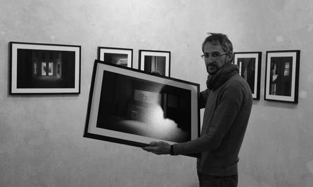 Lafuente ha variado la temática en ‘El lugar de los hechos’ manteniendo al mismo tiempo un estilo que aborda la fotografía desde la realidad construida que ya la define, al igual que el dominio de la luz y las sombras –protagonistas esenciales en esta serie de fotografías- y esa tonalidad blanco y negro, especial, diferente, nítida. Haces de luz que entreabren puertas, gatean por cañerías y tuberías, se cuelan por ventanas y ventanucos, ignoran escaleras y a sus pretenciosas balaustradas, fijan la mirada en escritorios y radiadores, esconden cajas apiladas en rincones, evidencian vallados rotos y delatan esa silla arrojada en mitad de la habitación. Las víctimas desaparecen en las recreaciones fotográficas de Rafa Lafuente, pero al mismo tiempo los crímenes que pudieron cometerse allí se multiplican ante la mirada del espectador. Cada recoveco es sospechoso. Apunta el fotógrafo a la variedad de usos de la fotografía. “Imágenes que sirven como prueba en una investigación policial que se recrean después dentro de un proceso creativo, artístico; imágenes documentales, que son ahora parte de un ensayo o una reflexión sobre los lugares y el efecto de la verdad”.