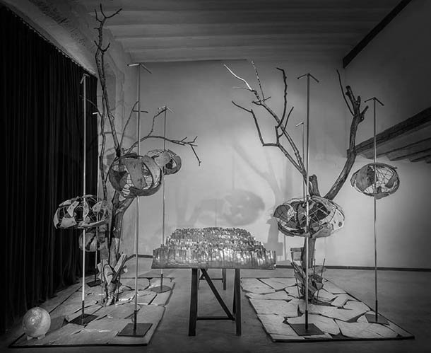 Aunque hace un año los árboles también tuvieron protagonismo en la exposición anual de la Casa de la Imagen y el propio Rocandio ha desarrollado un proyecto fotográfico de imágenes en gran formato de bosques, la mención a Sabando de la idea ‘árbol’ nunca se produjo. “Los árboles -describe el artista- estaban en mi casa y una oruga difícil de combatir y que no fue posible erradicar fue matando sus raíces. Ahí surgió la idea”. “Comencé a reflexionar -detalla- sobre el concepto de marcha, los árboles se van, su existencia se acaba. Pensé también en mí. Pensé en lo que nos da la vida. Constaté que los árboles siempre son seres muy cercanos al hombre, lo soportan todo y decidí ahondar en esa filosofía, en la idea de continuar la vida”.