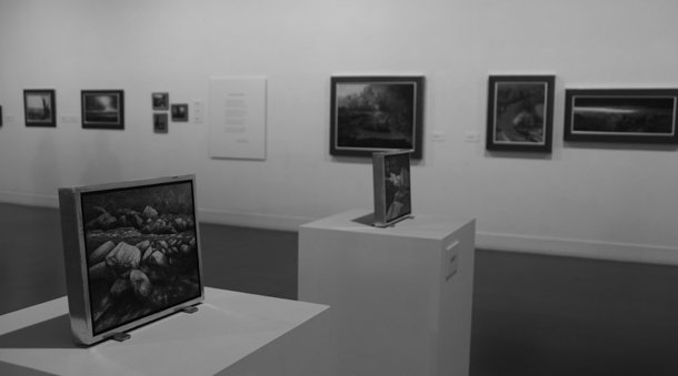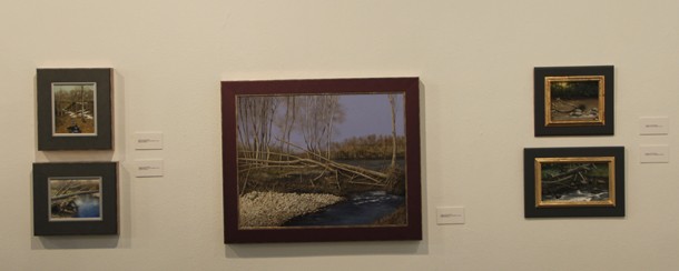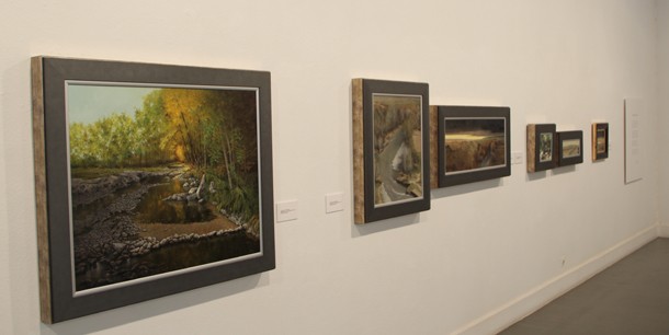 En la muestra de la Sala Amós Salvador están los siete ríos y los siete valles, los árboles, los bodegones, y dentro de cada capítulo los puentes, las llanuras, las montañas, las colinas y los montículos, la tierra y los campos de labranza, los remansos, las pozas y los recodos que dibujan los riachuelos al transitar por esos rincones que sólo encuentra quien tiene una sensibilidad especial.