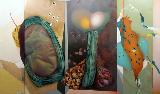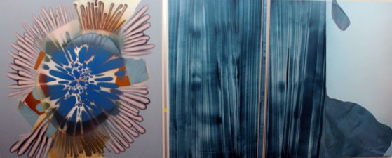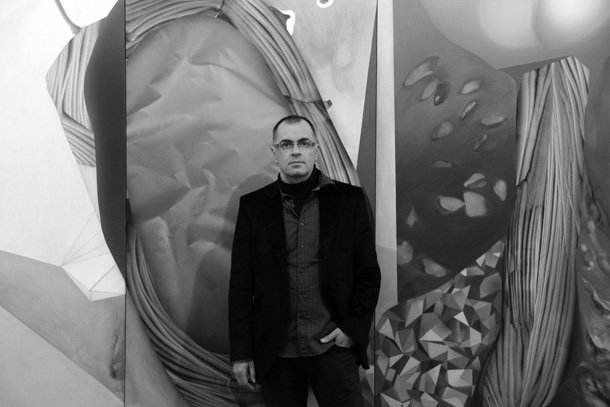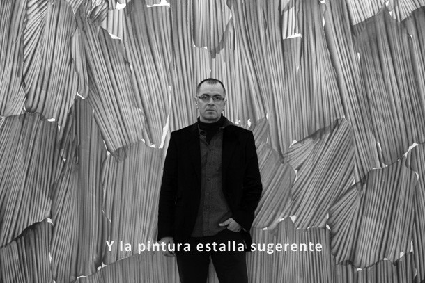 La chispa detona su proceso creativo surge del trabajo diario. “Paso muchas horas en el estudio pintando –reconoce- y no cedo ante lo primero que sale”. Revelan las palabras de Daniel cierto sufrimiento al pintar. “Sufro porque dudo –confiesa-, no es un sufrimiento por angustia, es un sufrimiento porque no sé porque pinto estos cuadros, llevo años pensando y dándole vueltas a si lo que hago merece la pena”. Y es que, en opinión de Verbis, la duda es imprescindible. “Hoy en día, a un tío que no duda se le tiene por profesional, se considera un signo de fuerza. No lo entiendo así, para mí quien duda es una persona responsable. Yo dudo al pintar y también, por ejemplo, al distribuir las obras en una exposición”. ‘El mercurio de la carne o el nacimiento del amor’ y ‘Así fue como tus ojos penetraron en el fondo de mi corazón’ ocupan el muro norte de la sala, no ofrecen pistas, despiertan la curiosidad, dejan que la materia avance, impactan en quien se detiene a observarlas…y en un instante precibes cómo la pintura rompe sugerente./Javi Muro