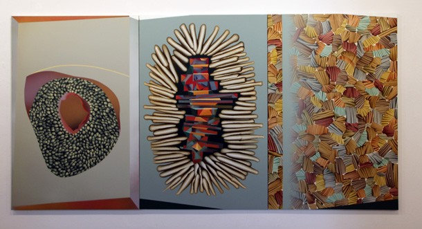 Mientras recorre la sala en compañía del director general de Cultura, Eduardo Rodríguez Osés, y de la concejala de Cultura, Pilar Montes, el artista apunta la facilidad con la que surgen sus esculturas y la dificultad que entraña, por el contrario, el proceso creativo de sus pinturas. Observa sus cuadros y habla de ideas sumergidas en un ‘algo’ gelatinoso, al tiempo que reflexiona sobra la condición de las ideas, “conceptos que vamos cambiando constantemente, las cambiamos acondicionándolas a lo que nos va ocurriendo en la vida. Por eso me interesan las ideas de la gente, no tanto las que se dicen sino las que se hacen, las ideas que son ‘la verdad’”. Quizá, desde ese convencimiento, se explica que Daniel Verbis entienda la pintura con vocación de permanencia, “como un recorrido, no de futuro, sino de pasado, como un intento de entender”.