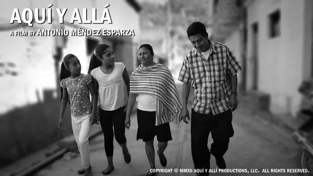 Antonio Menéndez Esparza dirige ‘Aquí y allá’ la historia de un hombre que tras trabajar varios años en los Estados Unidos regresa a la Sierra de Guerrero. Allí se reúne con su esposa y sus dos hijas, que muestran hacia él un cierto distanciamiento. Tropezar de nuevo con las dificultades económicas de siempre lo lleva a plantearse la idea de volver a emigrar; pero también sus paisanos ven la emigración al norte como la única salida para mejorar sus condiciones de vida.