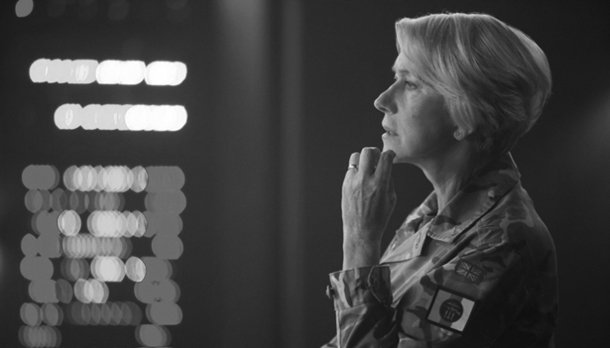Eliminar a los objetivos es una decisión que se complica por los daños colaterales, porque toca valorarla a distancia y porque el uso de un dron va más allá de posibles víctimas humanas. La muerte de civiles, aunque sea accidental, tiene un profundo impacto en la llamada guerra propagandística. El personaje al que da vida Mirren muestra la línea dura en los debates, ya que es quien más desea acabar de un plumazo. Pegada a su interfono, cada frase de la coronel es una orden.