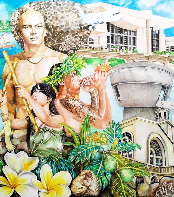 A través de una selección de objetos y documentos históricos provenientes de instituciones como Museo y Archivo Naval, Museo de América, Biblioteca Nacional o Real Jardín Botánico, además de piezas del propio Museo Nacional de Antropología, la muestra plantea los principales pasajes históricos de las Marianas con los significados que la sociedad chamorra otorga a ese legado.