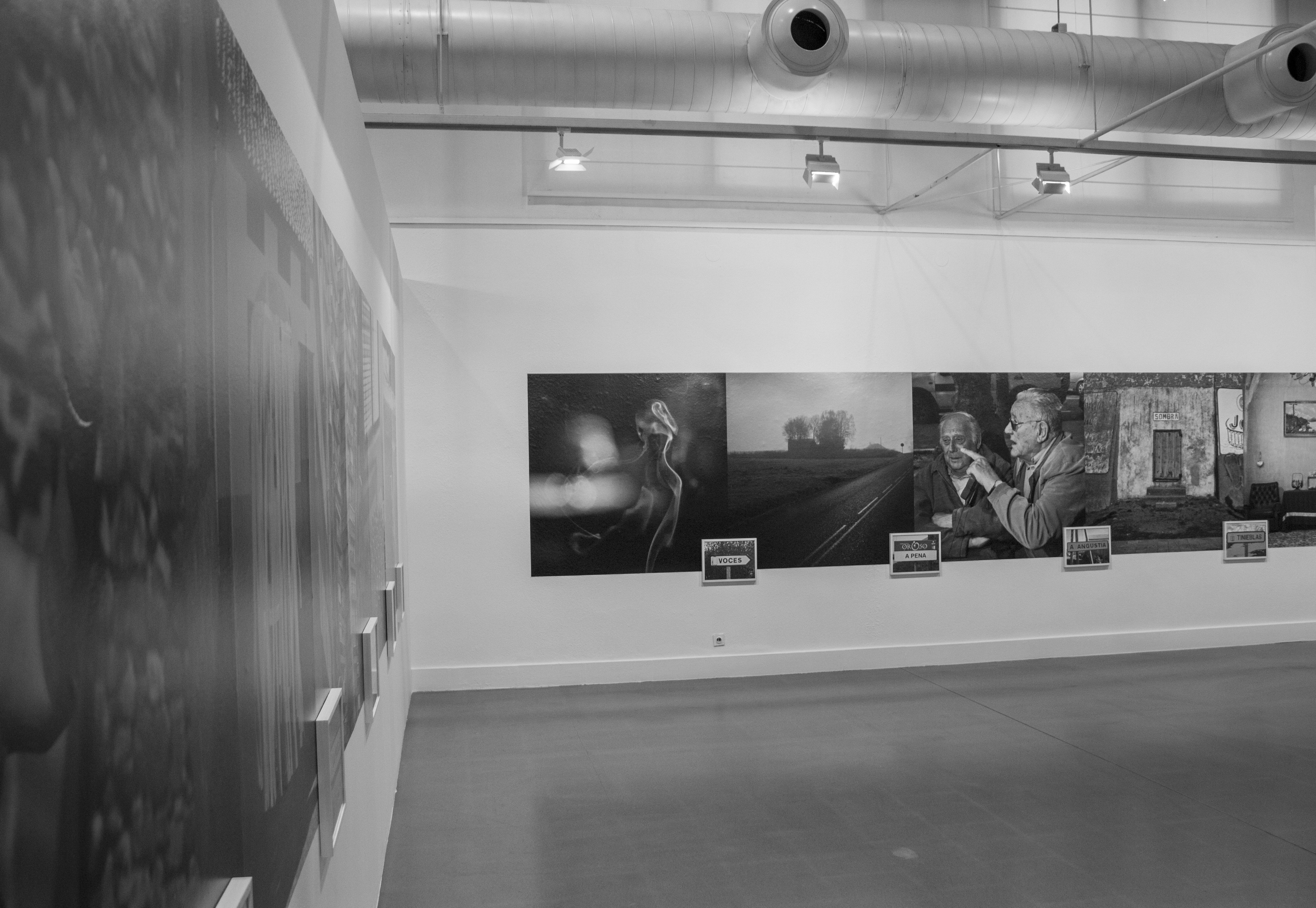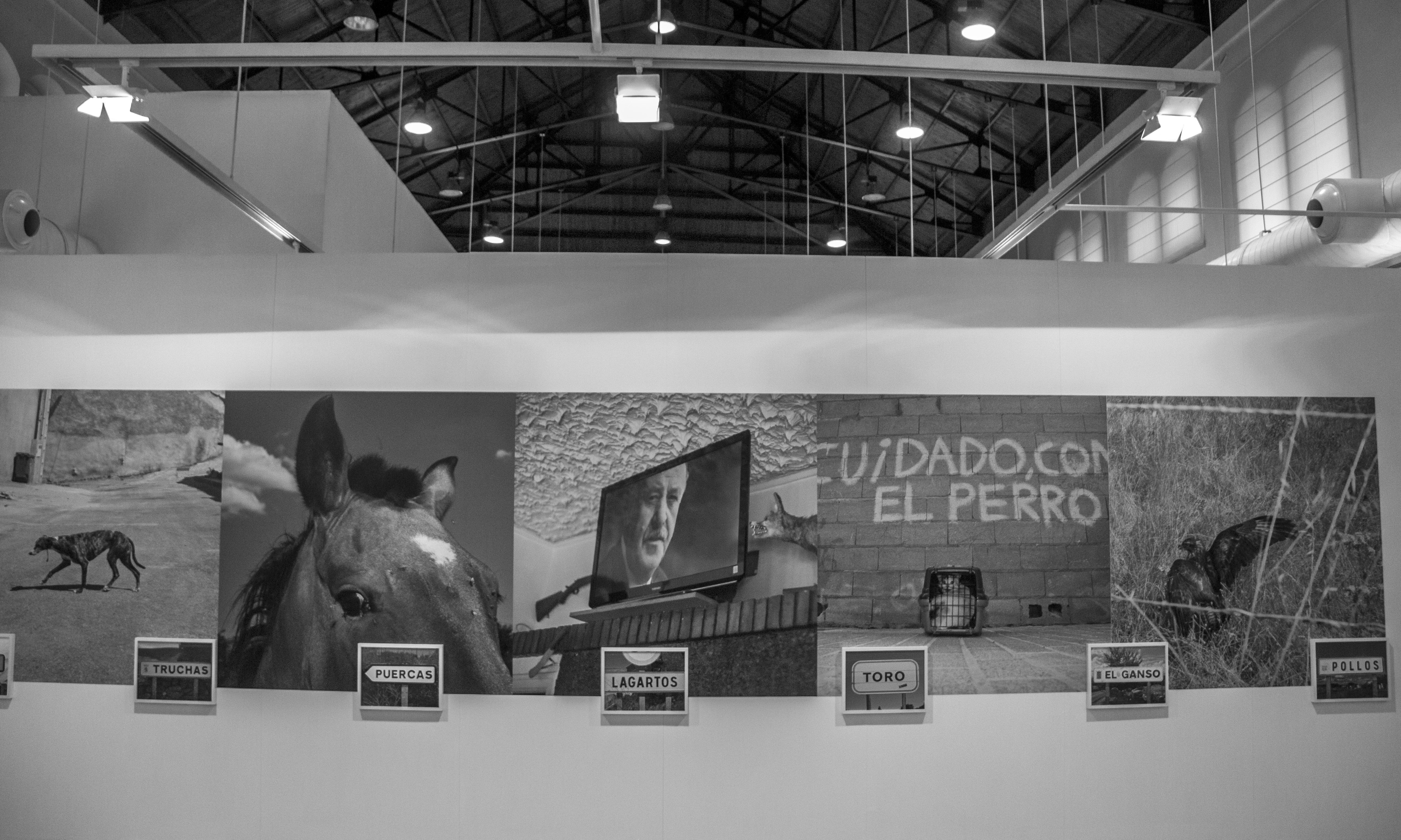 Middel describe la España que observa a través del objetivo de su cámara, la mujer de las pieles y el bolso al brazo; el caballo durmiente; los topónimos; las señales -incluso alguna de prohibido-; las pintadas; los momentos históricos que quizá no los son tanto si los enfrentas a las cosas realmente importantes; chicas tristes y canguros armados y carreteras; por al final siempre queda la carretera. Sierra evoca el desierto de nieve y hielo, al hombre camuflado frente al frío, y las banderas negras que revelan la conquista, por un lado, y la aventura y el reto concluido por otro. El norte y el sur; enfrentados y coincidentes./Javi Muro.