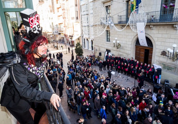 Al grito de ¡Marcha!, en el balcón del Ateneo rugían las guitarras de Black Disert y la voz de su vocalista, un instante antes de que los protagonistas de la mañana reanudaran el dilema entre lo clásico y lo moderno. Que sí lo de siempre es mejor, que si hay que abrir nuevos caminos, que si es preciso experimentar… la discusión parecía no tener fin hasta que el Orfeón Logroñés tomó cartas en el asunto. Para sorpresa y deleite de los asistentes, de las voces del coro surgieron algunos de los temas míticos del rock nacional. Cantaron desde ‘Mierda de Ciudad’, de Kortatu, a ‘Maneras de Vivir’, de Leño, pasando por ‘Blanco y Negro’, de Barricada. Fueron los primeros triunfadores de la presente edición de Actual y finiquitaron el debato. Los valedores de una y otra postura comprendieron, al fin, que lo realmente importante es que la música esté en la calle./Javi Muro