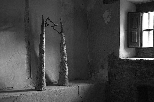 “Mis piezas son escenografías y el que las mira o las anda es el protagonista de la obra”, así define Roberto Pajares ‘Pájaro’ su nueva exposición 'Tiempo & Fuego'. La muestra ha sido concebida expresamente para EspacioArteVACA, el espacio expositivo para creadores de arte contemporáneo, arte povera y land art que se extiende a lo largo de la antigua cuadra de la casona de la familia Bernáldez en Viniegra de Abajo y que abrió sus puertas la pasada primavera.