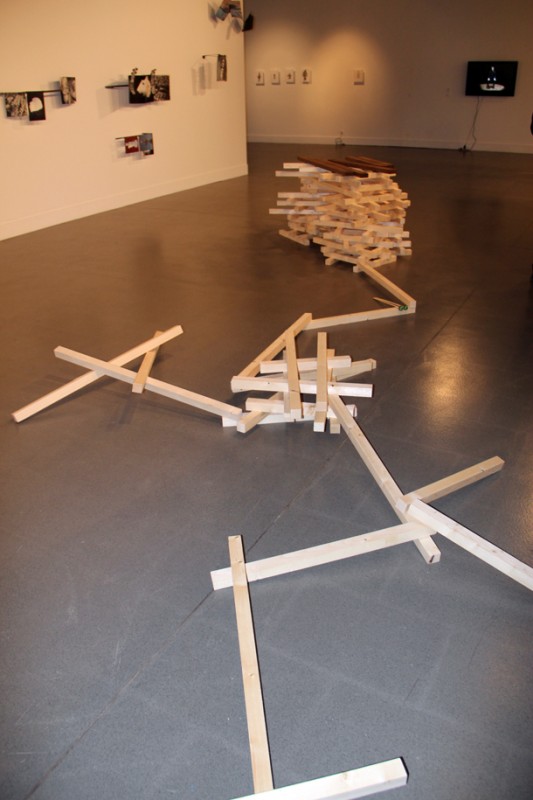 Daniel Llaría (Logroño, 1985) trabaja principalmente las video creaciones, la escultura, la performance, instalación y el collage. La obra que presenta en la exposición de la Sala Amós Salvador está compuesta por cuatro videos y una amplia muestra de sus esculturas pertenecientes a un conjunto llamado ‘The retrieval series (2016)’. Esculturas en las recupera una manera de construir, “el ensamblaje alrededor de imágenes”. Asegura Llaría que la relación entre imagen y materia, esa dicha dialéctica, ha estado en la base de mi práctica desde el principio. Y aquí han reaparecido de una manera muy caprichosa que funciona como una declaración sobre la imagen, interesada en contraponer sus cualidades indexales con sus materiales”.