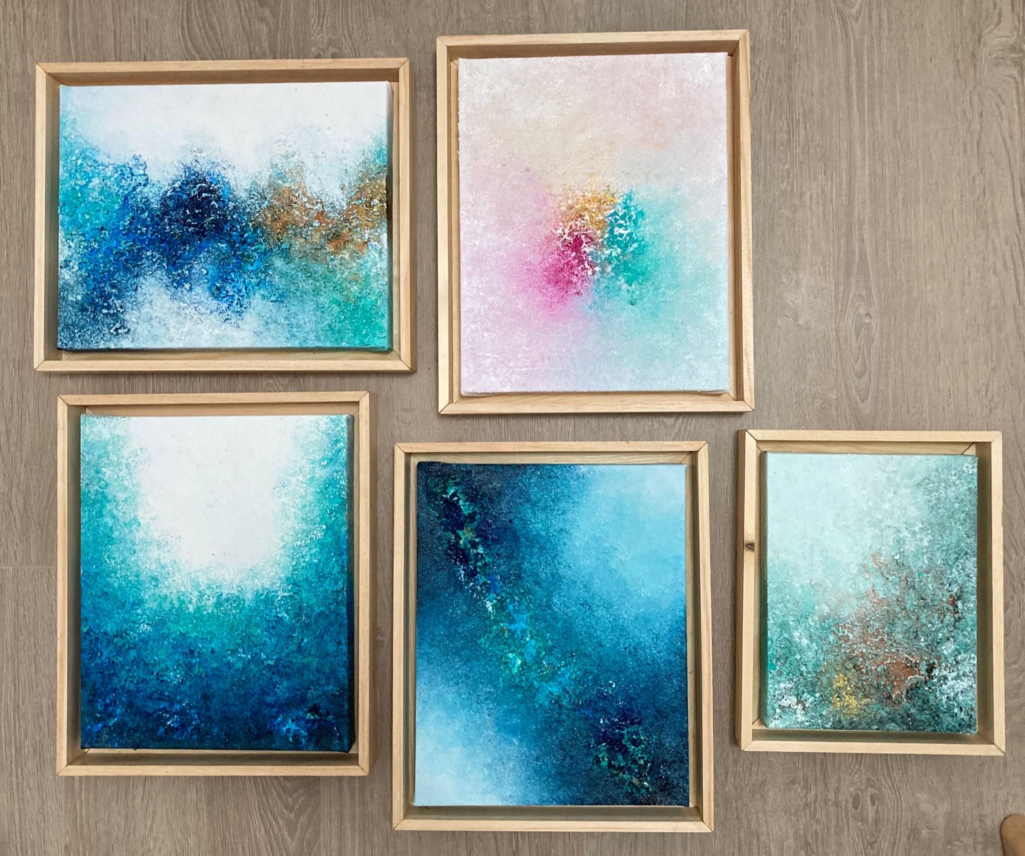 El proceso creativo de Andrea C. comienza cuando se transporta a uno de esos momentos vividos en los recuerda emociones, para acto seguido analizar y definir qué es lo que quiere transmitir, qué es lo que quiere que el destinatario de la obra sienta. “Después -indica- pienso en la combinación de colores, realizo una gama cromática con tonos más fríos, otros más cálidos, o más potentes”. El siguiente paso es el diseño de la textura, de los materiales a emplear y de su grosor. “Tras el trabajo previo -determina Andrea- llega el momento de jugar con el lienzo y los pinceles”. El repaso de los detalles con pinceles más finos y el barnizado final completan el proceso. “En ocasiones, dependiendo de tipo de obra y de cliente realizo también el enmarcado, con madera de pino. Me gustan, especialmente, los marcos flotantes, creo que encajan muy bien con mi pintura”. Al detallar está última fase, Andrea apunta la buena relación que mantiene con su padre y su madre. “Me ayudan muchas veces -revela- con la labor de enmarcado. Pasar tiempo con mi familia es algo que me gusta”.