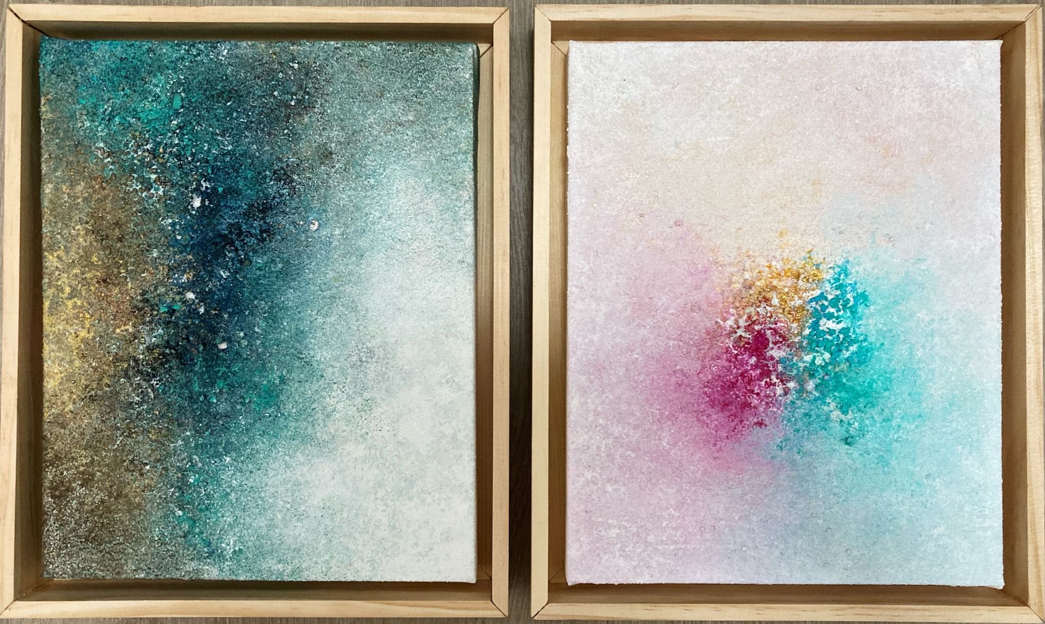 “Recuerdo estar de viaje en Roma -describe Andrea-, vistamos una iglesia preciosa y en el interior sentí una enorme emoción al contemplar las paredes decoradas con diferentes motivos naturales, con unos colores espectaculares acompañados de tonos dorados. Allí surgió la idea de crear pinturas con texturas de la naturaleza y combinarlas con colores para transmitir emociones”. De alguna manera, las obras actuales que surgen del pincel de Andrea son una evolución porque como ella misma reconoce “siempre me había llamado la creatividad, desde pequeña. Ya en Tercero de la ESO mi asignatura favorita era Tecnología. Recuerdo tener que realizar las típicas figuras que te pedían durante el curso y que no terminaban de salirme bien. Tenía un profesor muy estricto y no lo pasé muy bien”.