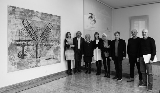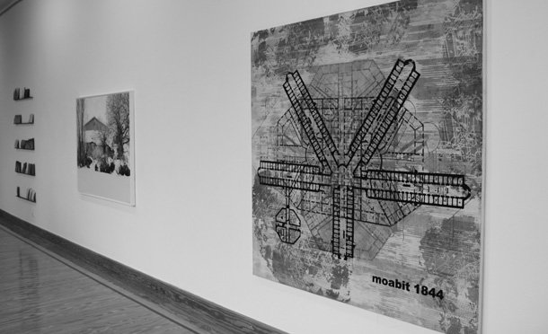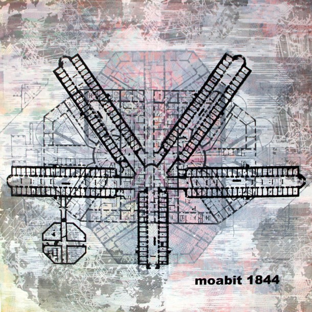 ‘MOABIT I’ forma parte de la investigación artística que el pintor inicio años atrás y en la que el hilo conductor es la violencia, el control del individuo, la intimidad o, por ejemplo, la videovigilancia. La obra ganadora del certamen muestra los planos en superficie superpuestos de los edificios de la cárcel de Moabit. La prisión berlinesa –son varias, en realidad- entró en servicio en 1844 como centro penitenciario prusiano dónde los detenidos los detenidos debían ser purificados a través del aislamiento moral. Años después se convirtió en centro de salud mental y con el régimen nazi recupero su condición de cárcel.