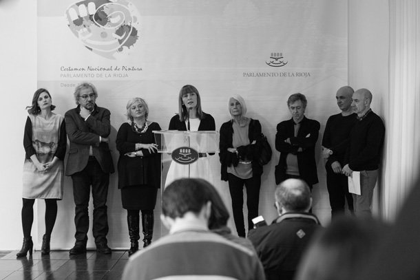 El jurado de la X edición del Certamen de Pintura Parlamento de La Rioja ha estado formado por Soledad Lorenzo, galerista y Medalla de Oro de las Bellas Artes 2006; Alicia Ventura, gestora cultural e historiadora del arte; Darío Urzay, artista plástico y Premio Nacional de Arte Gráfico 2005; Jesús Rocandio, Galardón de las Bellas Artes Riojanas 2013, y, Julián Valle, Premio de Pintura Parlamento de La Rioja 2015. “Nos ha llamado mucho la atención –detalló Ventura, que ejerció de portavoz del Jurado- el alto número de participantes y la altísima calidad de las obras presentadas. Estamos muy satisfechos con el resultado de los galardones porque creemos que reflejan muy bien lo que sucede en la actualidad en el arte., que sin duda alguna es muy ecléctico”. Alicia Ventura resaltó que “los artistas beben de muchas fuentes y los hemos comprobado en las obras presentadas al certamen, en las que se entremezclan referencias artísticas como la escultura, la arquitectura, por ejemplo, con la pintura”.