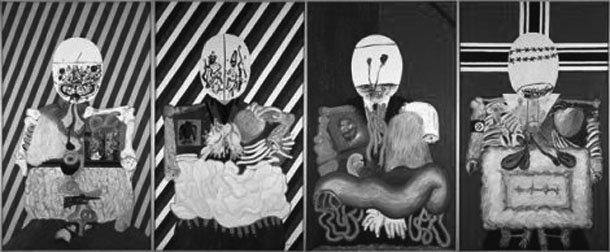 En 1963 Arroyo fue invitado a la III Bienal de París donde expuso sus retratos de 'Los Cuatro Dictadore'. Representaciones de Hitler, Mussolini, Franco y Salazar, donde se puede reconocer a estas figuras porque cada una lleva los respectivos emblemas y banderas nacionales, así como algunas características histórico-políticas que les identifican. Según el propio autor “son unos cuadros pintados en 1963 en el momento más áspero y rabioso, cuando quiero hacer mi pequeño proceso de Nuremberg y pedir responsabilidades a los criminales”[1].