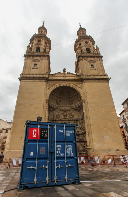 Allí, de sopetón, se tropezará con siete contenedores marítimos en aparente fuera de lugar. Sí, de esos que en las películas –y en la vida real también- sirven para el transporte de armas, drogas, tráfico de personas o coches de contrabando. Suelen mostrarse apilados y combinando llamativos colores sobre la cubierta de grandes buques o en la zona de estibación de los puertos. Aquí, en la céntrica plaza logroñesa, se muestran azules, un tanto despistados, pero enormemente enigmáticos y, según quienes ya los han visitado, la sustancia que almacenan –ilegal o no- se conoce como intensidad.